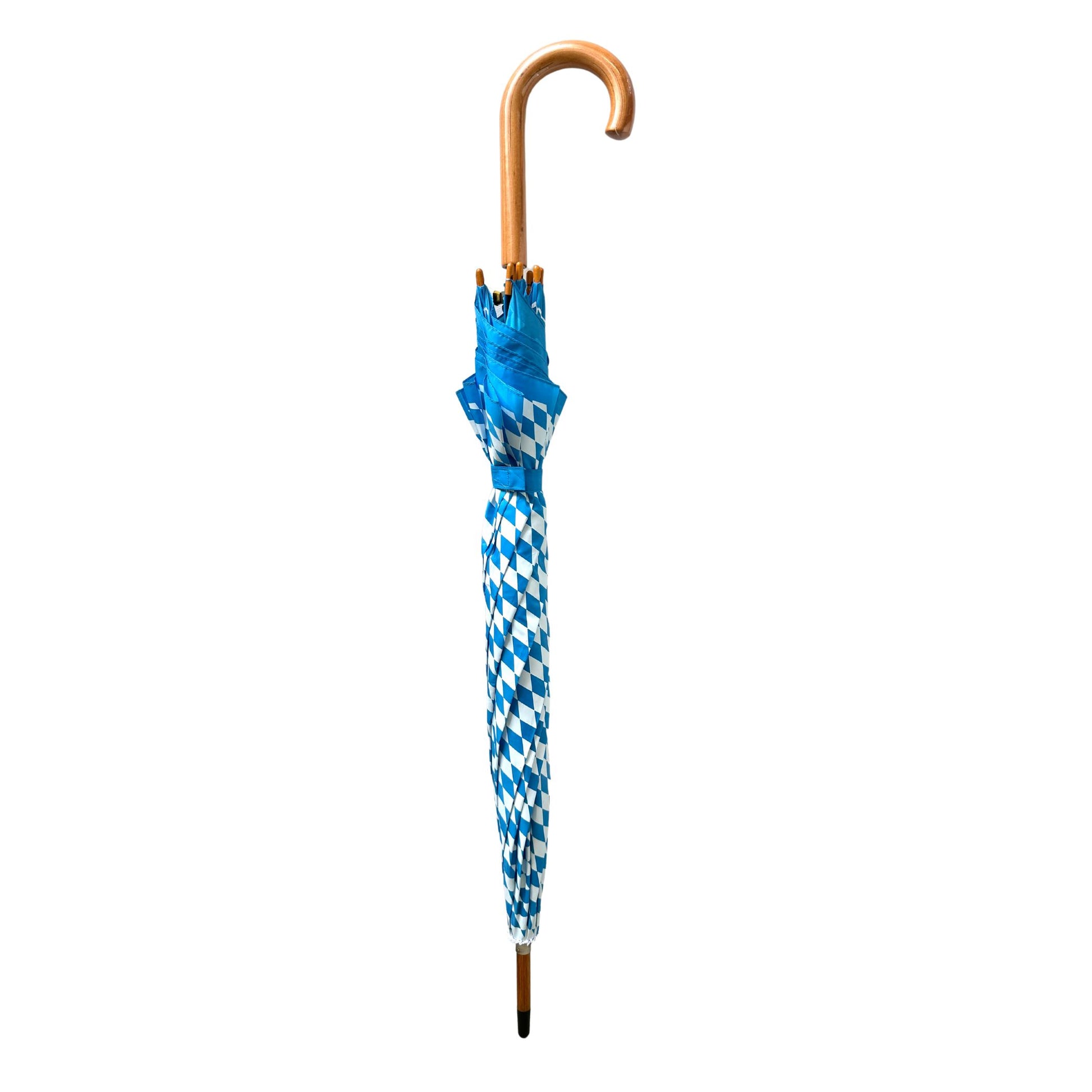 Der Stockschirm Raute ist der perfekte Begleiter für regnerische Tage. Mit dem klassischen bayerischen blau-weißen Rautenmuster und dem edlen Holzgriff ist er nicht nur funktional, sondern auch stilvoll. Idealer Schutz für das Oktoberfest und andere Regentage.