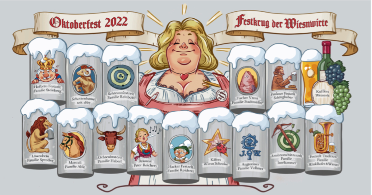 Every year, the Wiesnwirte festival mug represents all the host families of the Oktoberfest.