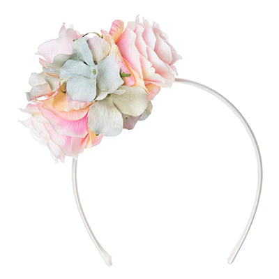 Blumenkranz, Haarkranz für Hochzeit, Sommerparty oder Oktoberfest. Aus vielfältigen Blüten und Blumenimitationen. Material: Seidenblüten & Blumen; Satinhaarreifen.