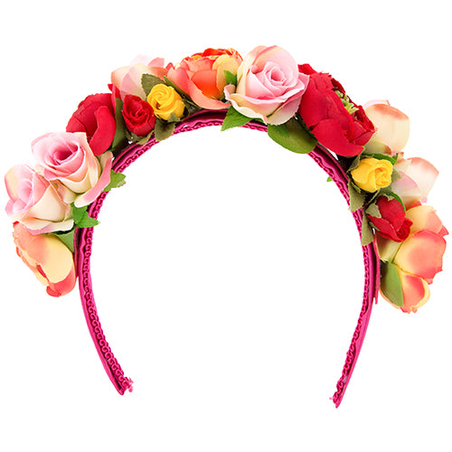Blumenkranz, Haarkranz für Hochzeit, Sommerparty oder Oktoberfest. Aus vielfältigen Blüten und Blumenimitationen. Material: Seidenblüten & Blumen; Satinhaarreifen.