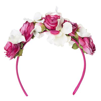Blumenkranz, Haarkranz für Hochzeit, Sommerparty oder Oktoberfest. Aus vielfältigen Blüten und Blumenimitationen. Material: Seidenblüten & Blumen; Satinhaarreifen.