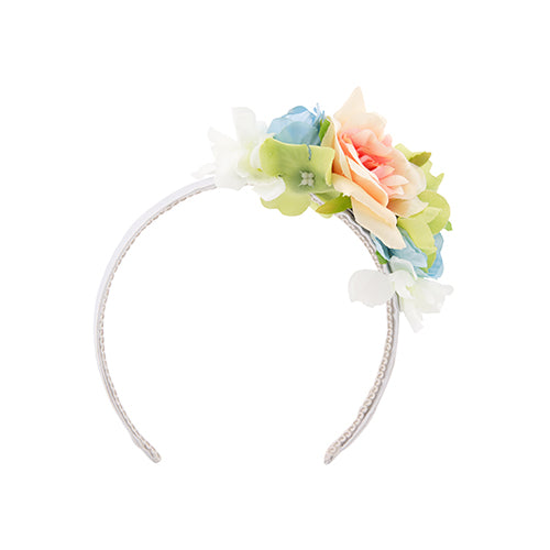 Blumenkranz, Haarkranz für Hochzeit, Sommerparty oder Oktoberfest. Aus vielfältigen Blüten und Blumenimitationen. Material: Seidenblüten & Blumen; Satinhaarreifen.